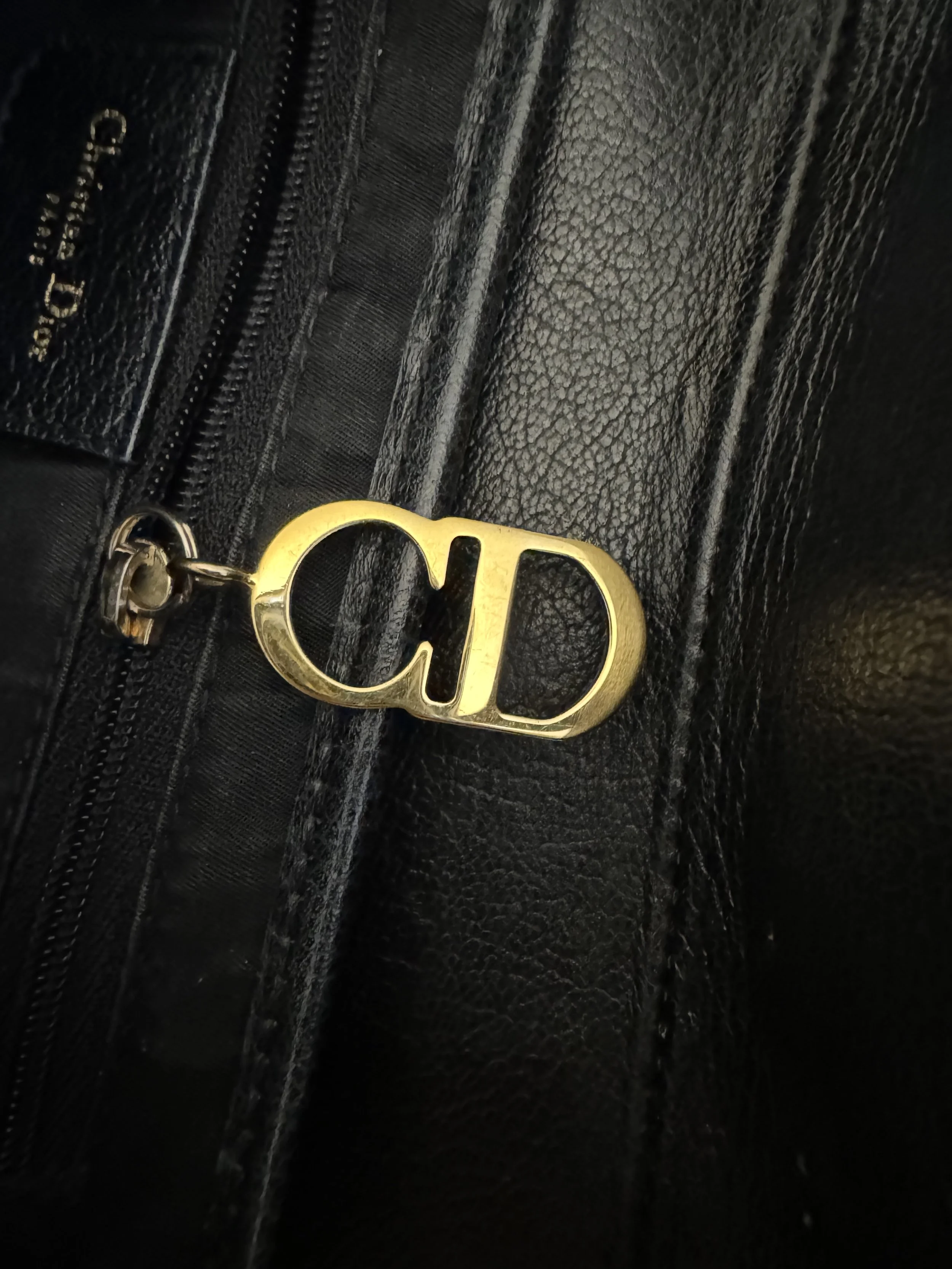 The interior pocket zip has a CD Charm as the pull.