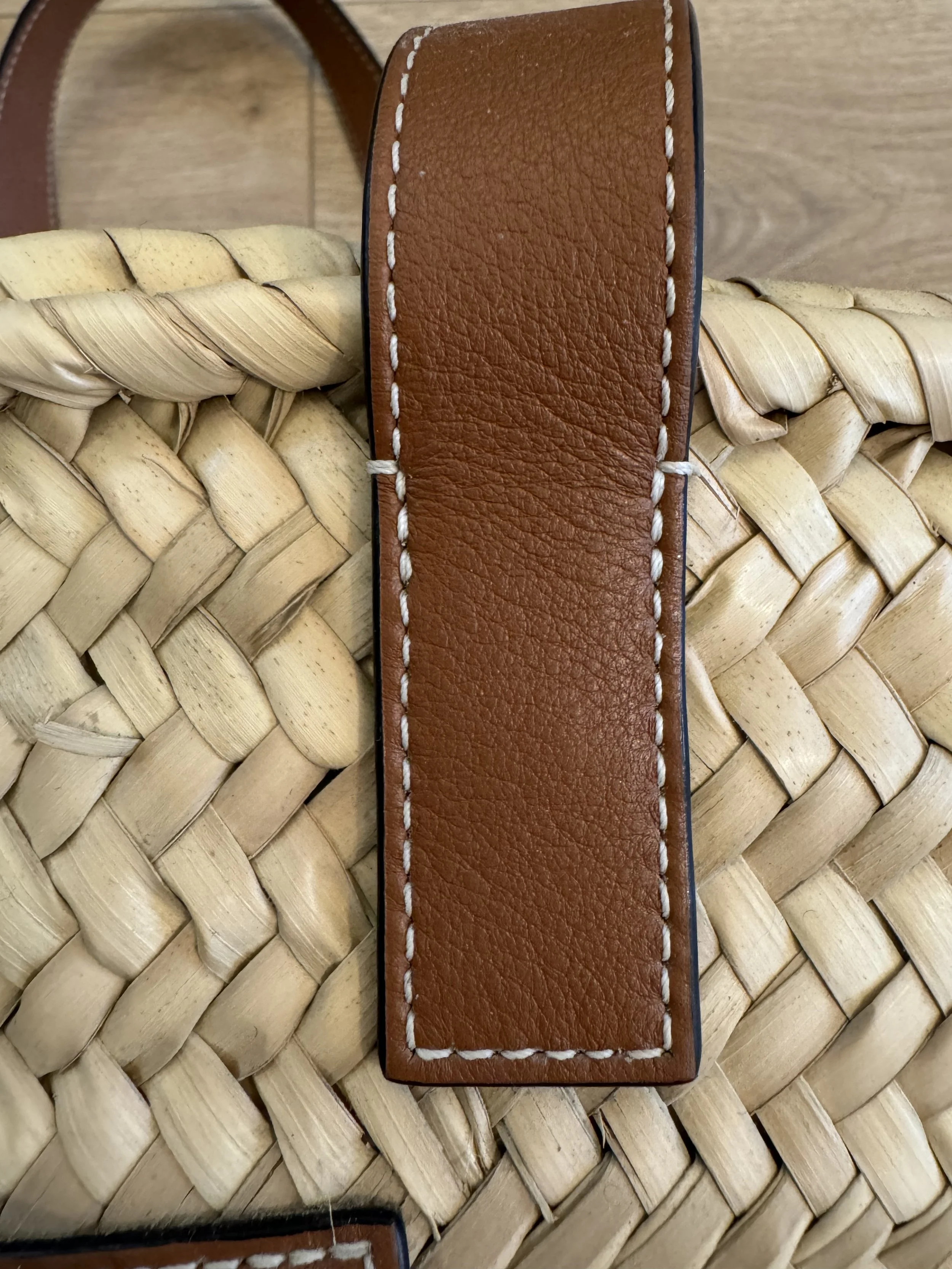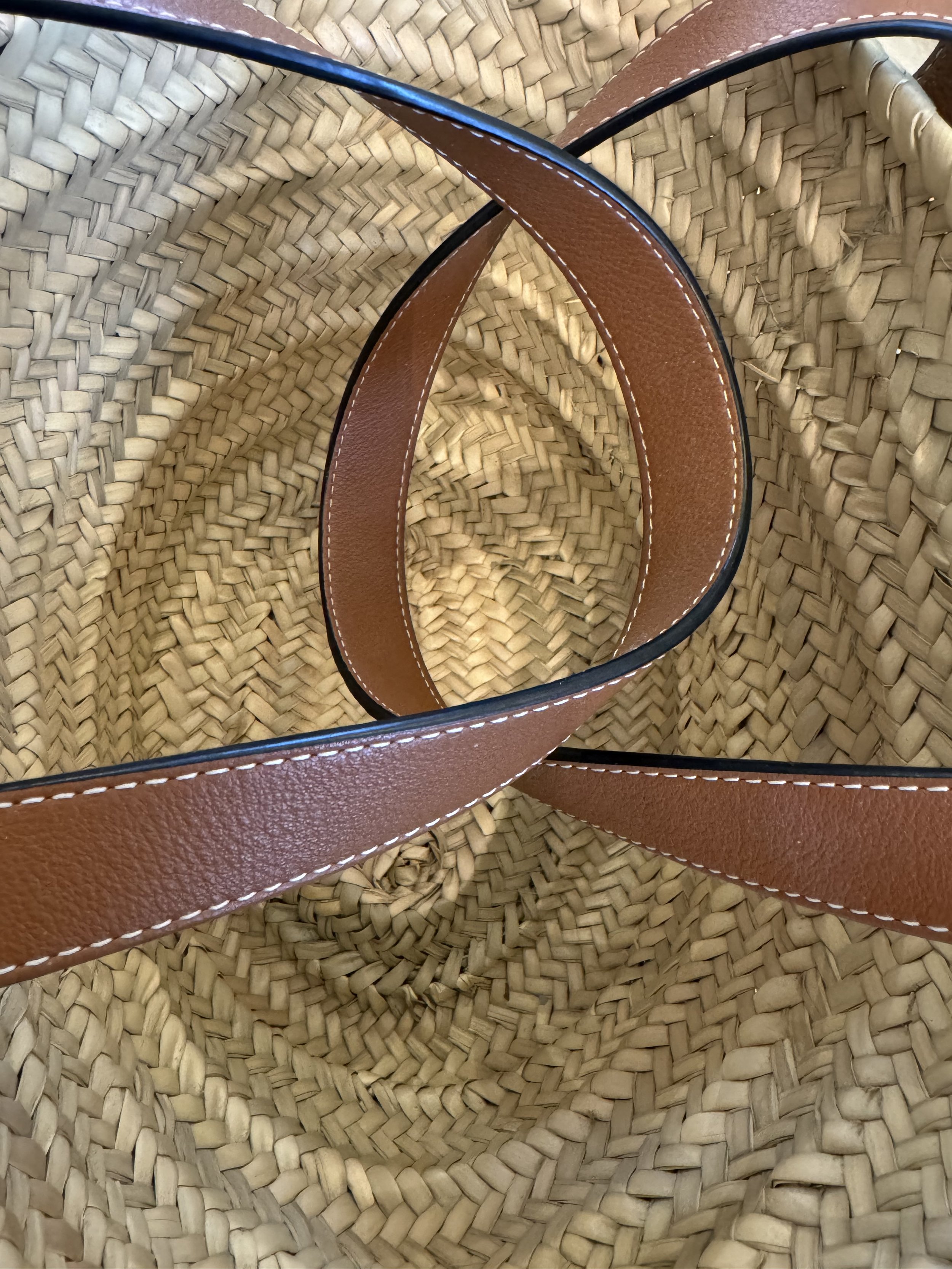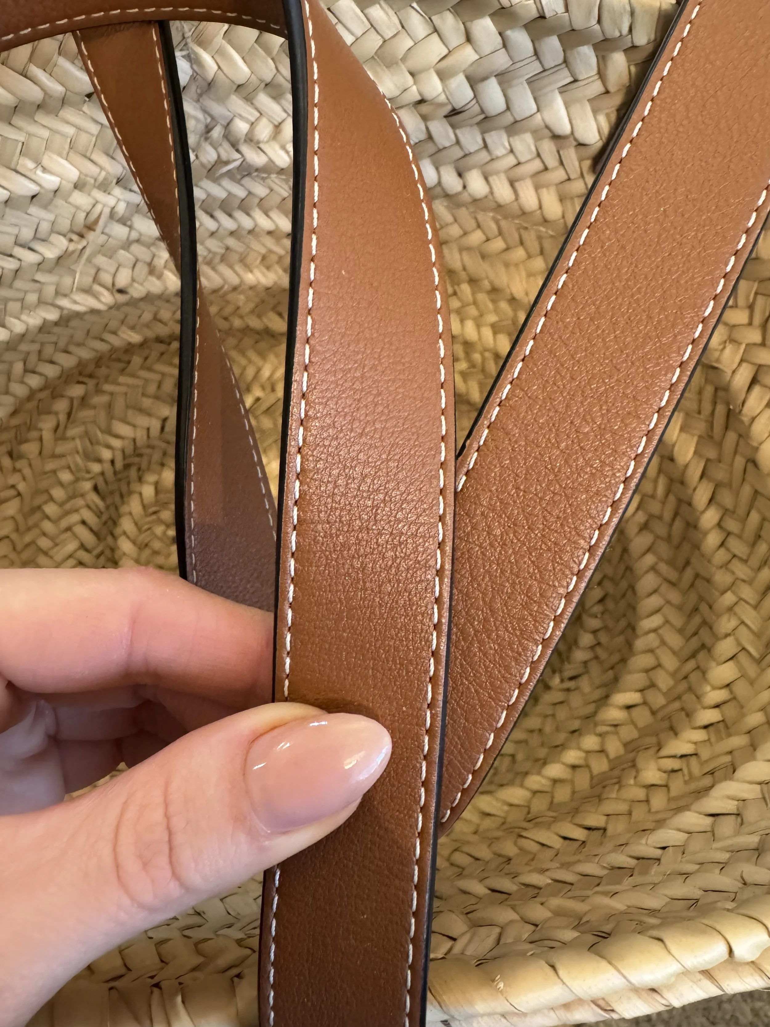 -If it sits up straight and on its own this is a good indicator of an authentic bag. If it is wonky, sits unevenly, or keeps falling over it is very, very likely fake. This is because the base of a weave bag is hard to craft. Loewe have exceptional artisan crafters who weave these bags by hand from palm leaves. They get it right and create a flat base.