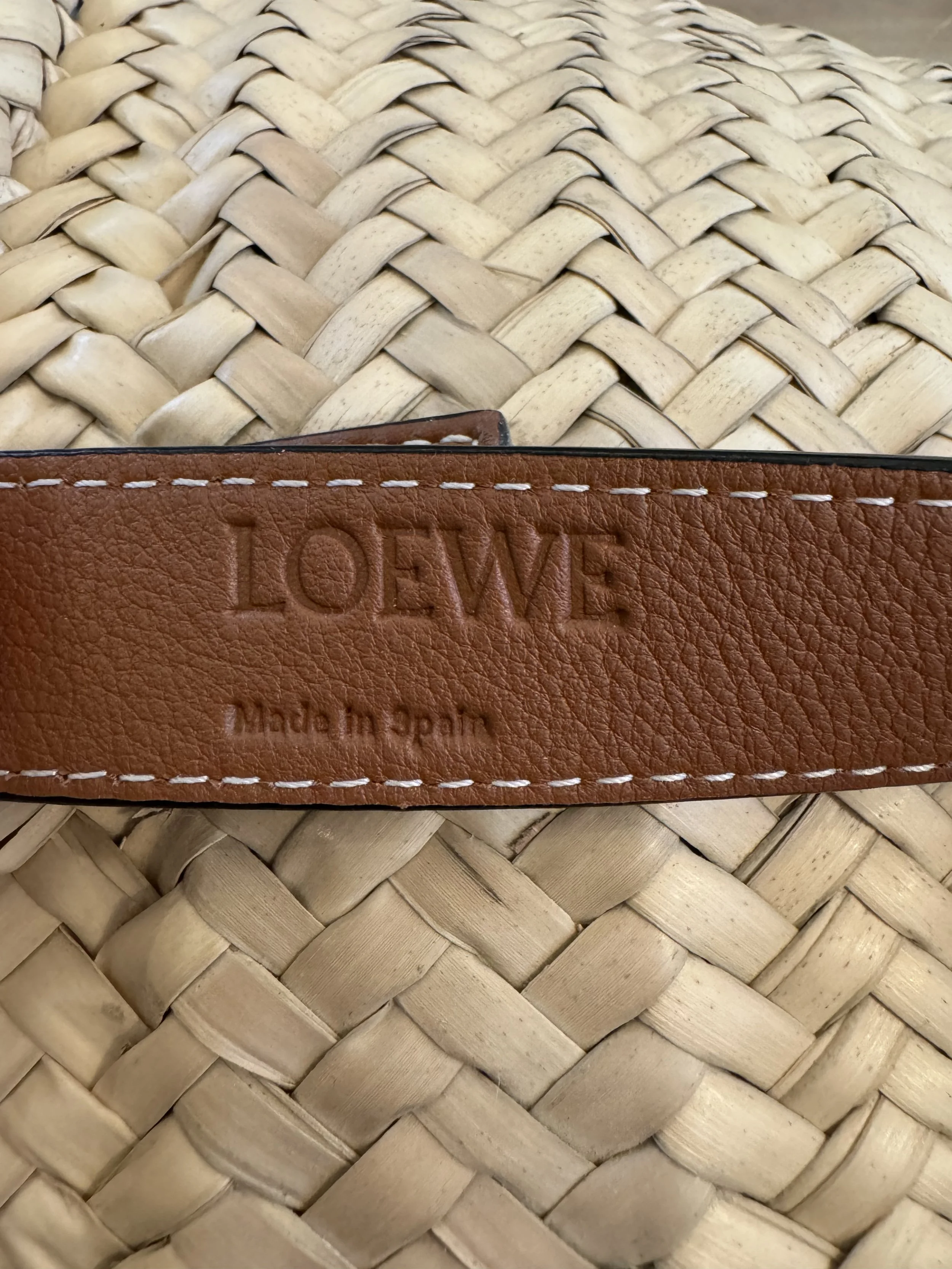 In 2014 Loewe underwent a rebrand and changed the font of 'Loewe' and reimagined the logo. But this doesn't affect the basket tote - as this was designed post 2014.