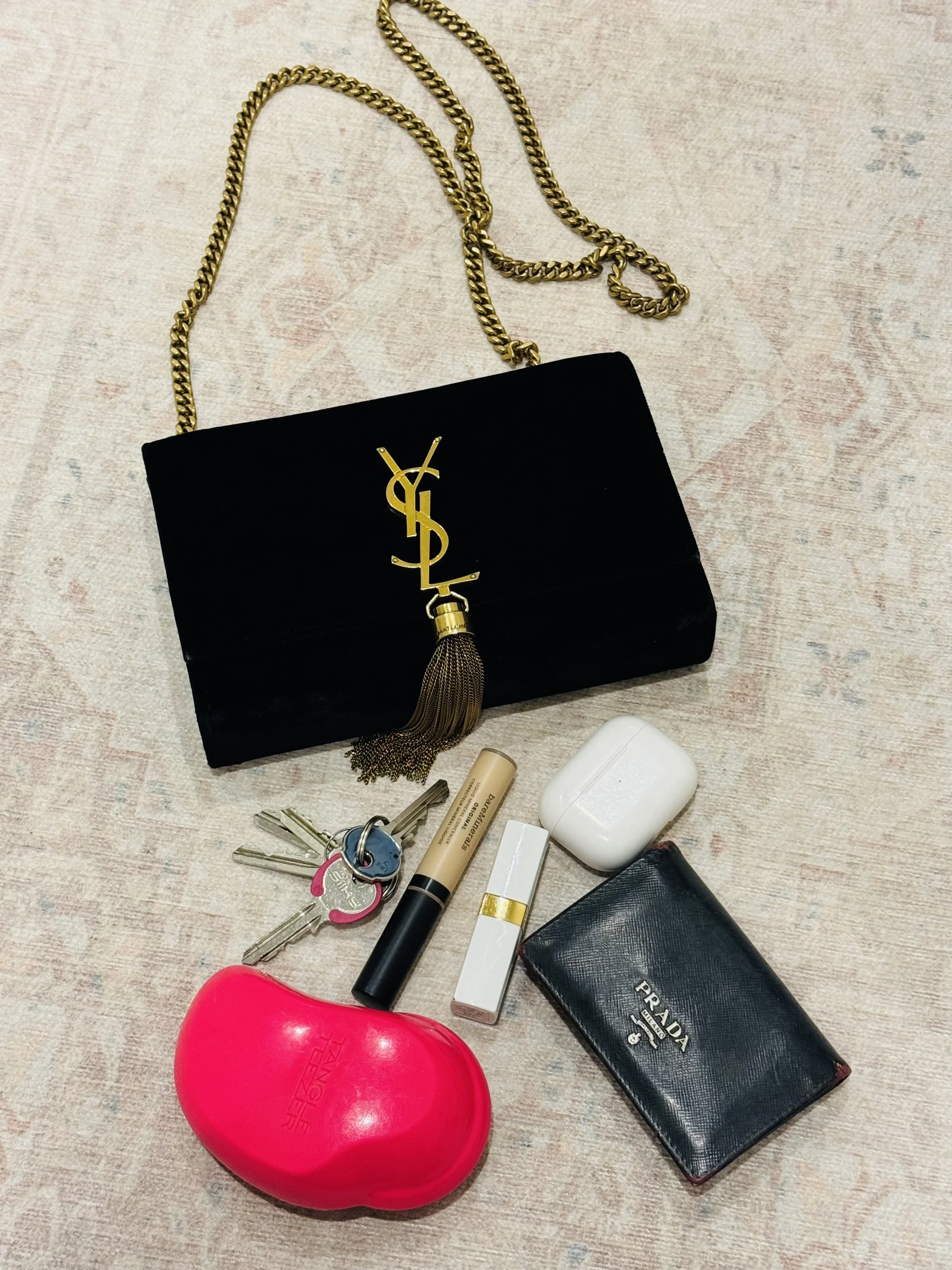 Let me introduce you to one of my all-time favourite evening bags: the YSL Kate Tassel Velvet Bag. This bag is truly a gem, and even 8 years after purchasing it, I can confidently say it holds its place as a timeless classic.